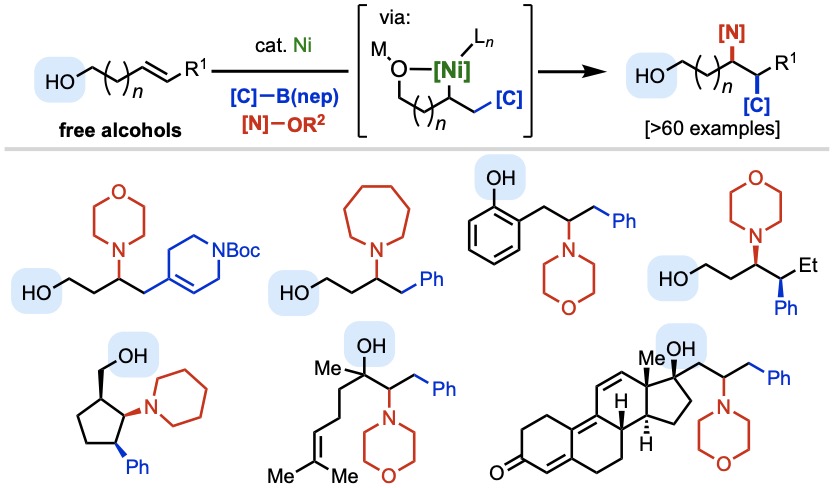 Turning to a new part of the periodic table this week, we describe our first foray into the use of W(0)/W(II) catalysis for migratory alkene functionalization. By taking advantage of the ability of tungsten to toggle between six- and seven-coordinate geometries upon oxidative addition, we are able to isomerize an alkene to a classically disfavored position through a metallacycle contraction process, where it is primed for carbonylative functionalization. Bravo to Tanner and Zi-Yang (Nick) from our group; our computational collaborators Will and Yu from the Liu group at the University of Pittsburgh; and X-ray crystallographer extraordinaire Milan from UCSD.